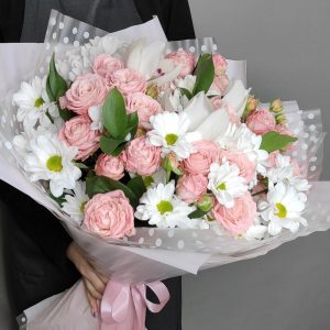 Букет из альстромерии с космическими орхидеями. Букет 253 ALMOND ROSES